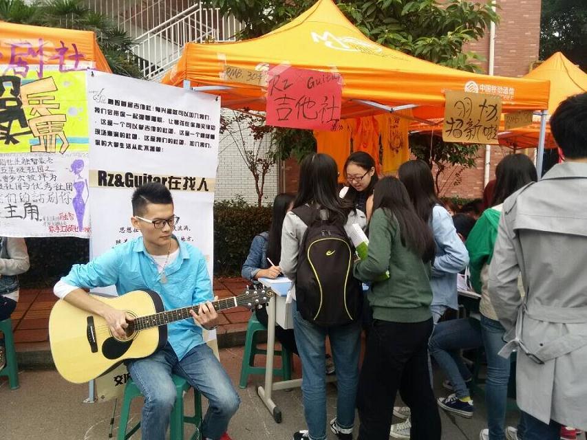 在招新现场,五彩的气球,特色的宣传随处可见,招新人员积极而又充满热情。